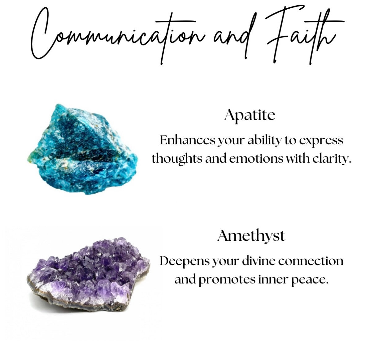 Combining Amethyst and Apatite helps you communicate better with yourself as well as with other around you. It deepens you interactions and creates more truthful social experiences.