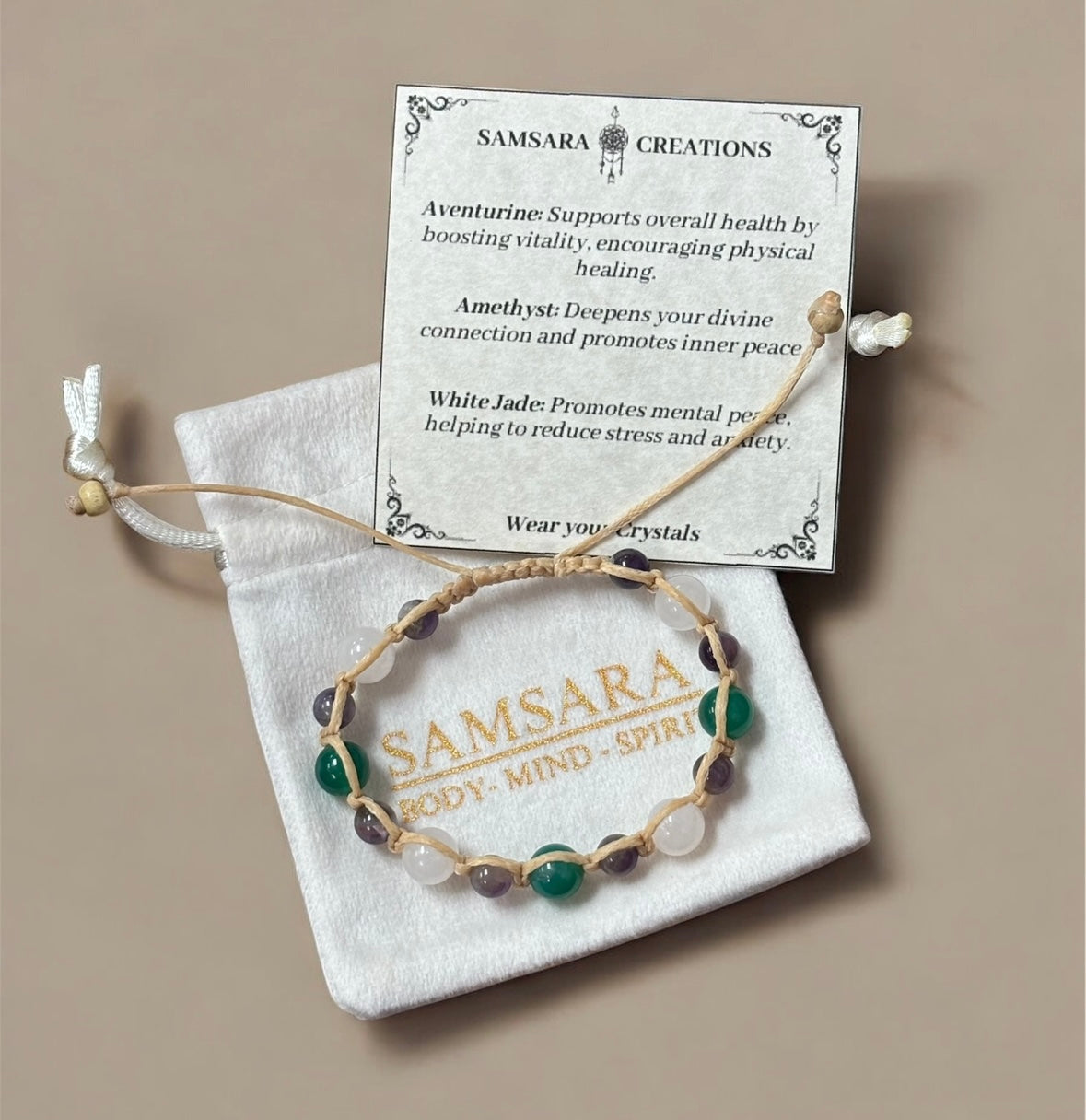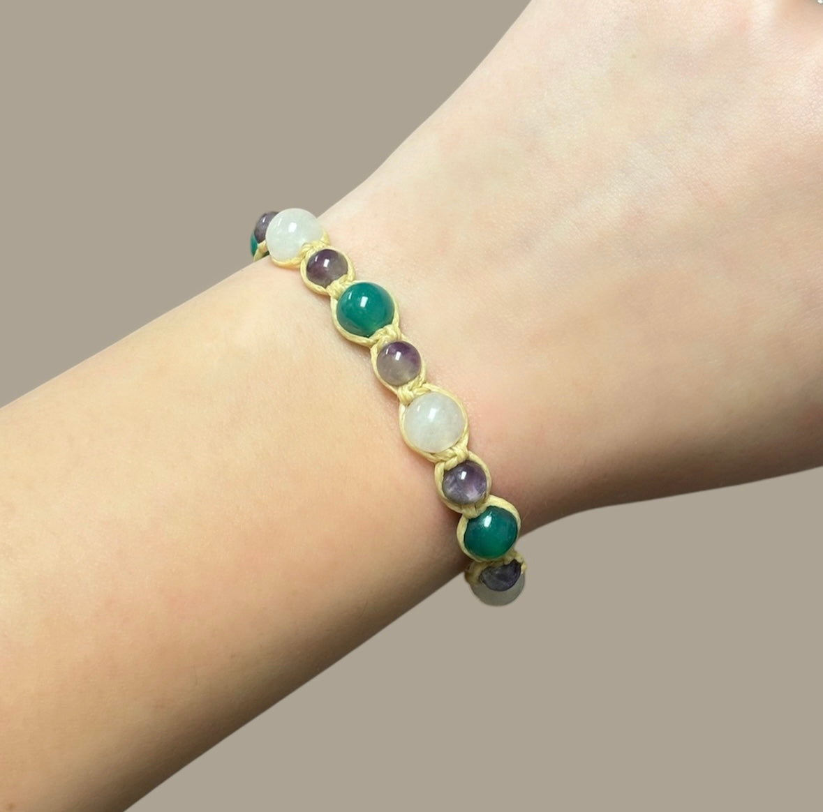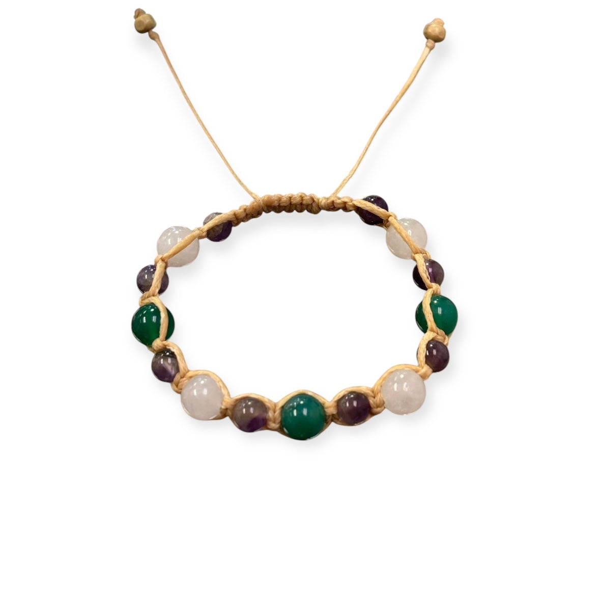 Aventurine, White Jade, & Amethyst Macrame Bracelet