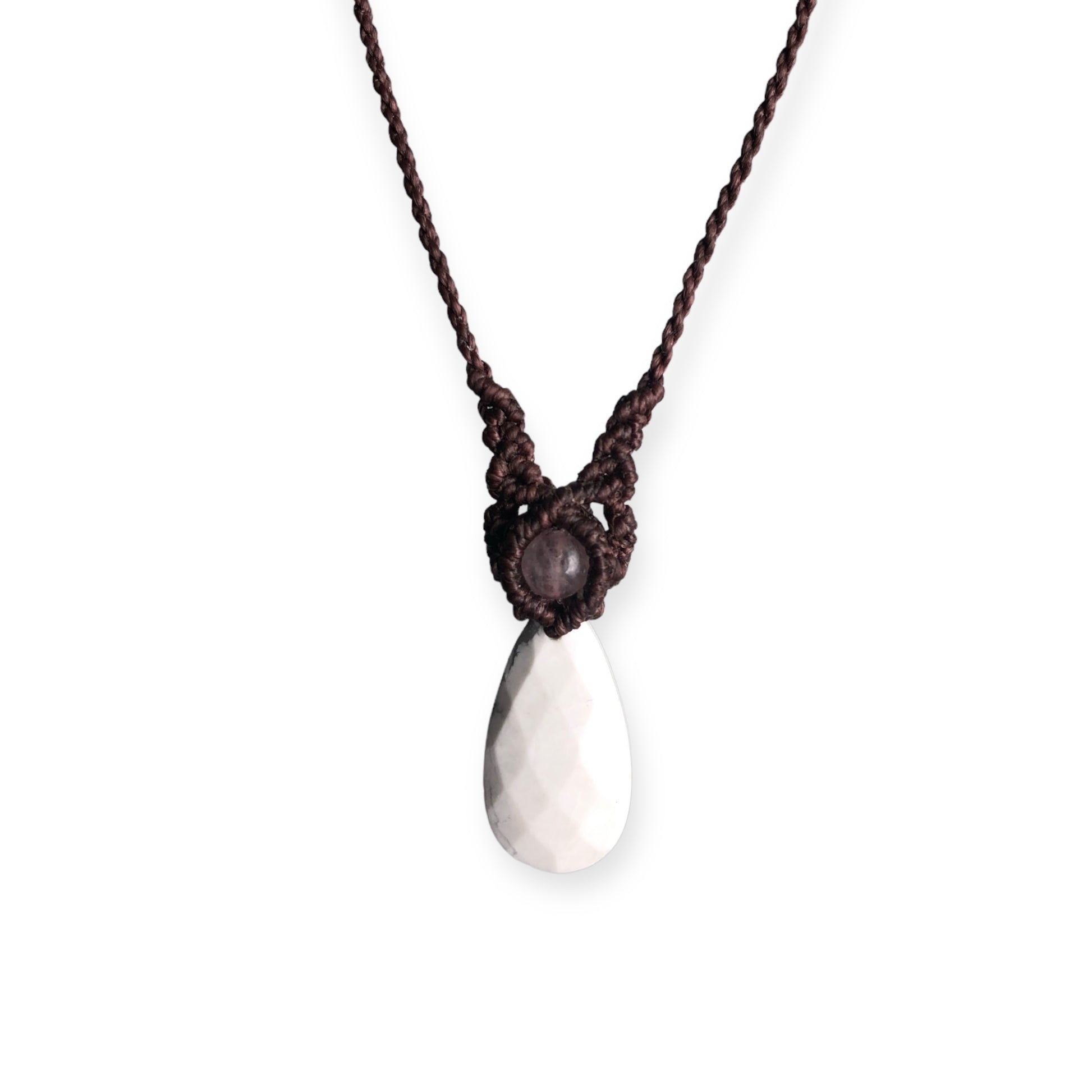Howlite & Rose Quartz Macrame Necklace Brown