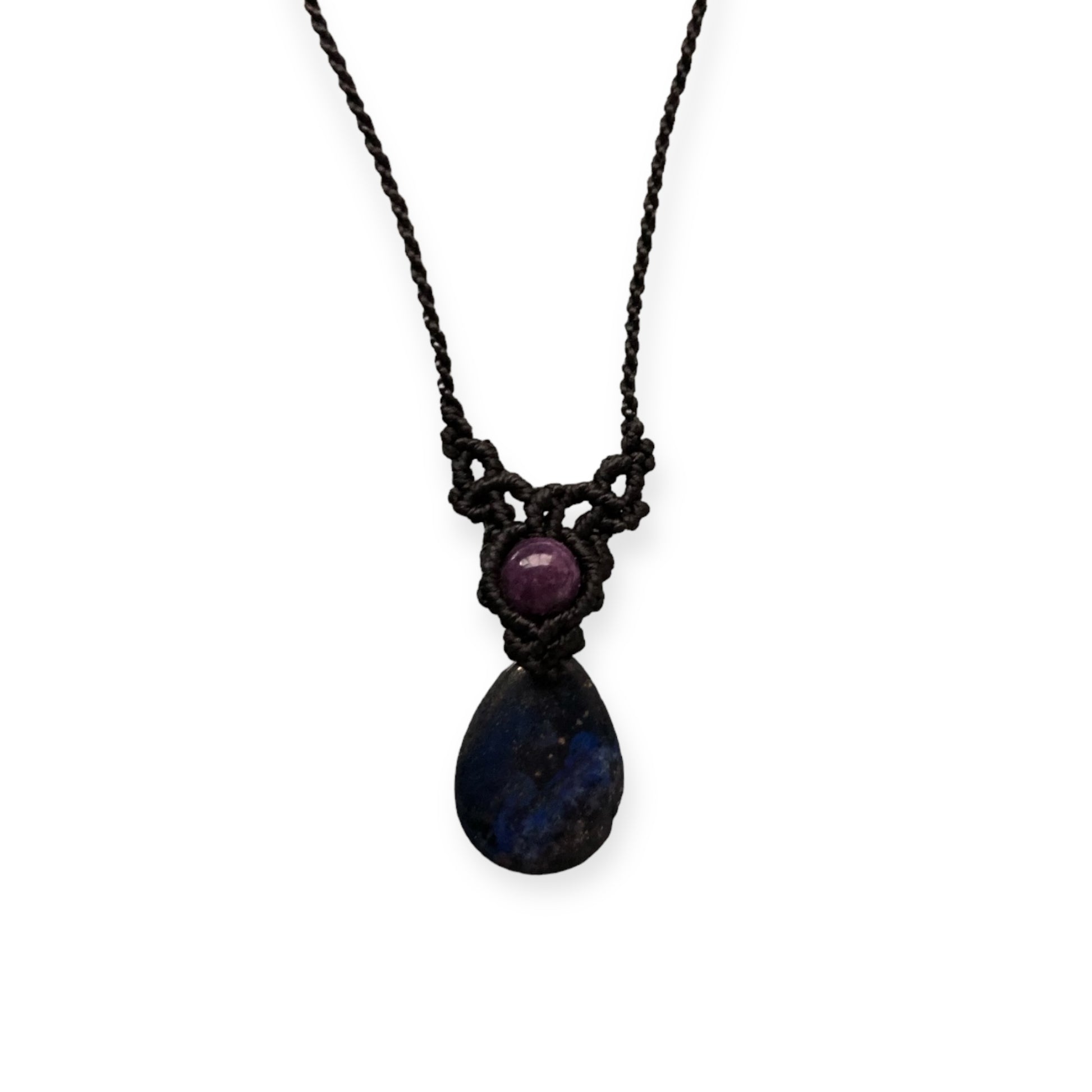 Lapiz Lazuli & Amethyst Macrame Necklace